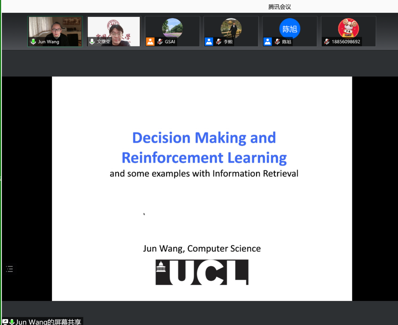 威尼斯人娱乐场官方网站 准聘助理教授陈旭博士邀请英国伦敦大学学院(UCL)计算机科学系汪军教授做客学院“高屋建瓴AI公开课”第11期讲座。汪教授以“Decision Making and Reinforcement Learning”为题,围绕机器决策与多智能体AI的最新技术、算法及其在信息检索领域的应用和未来的研究方向进行了精彩分享。讲座由威尼斯人娱乐场官方网站 执行院长文继荣教授主持。