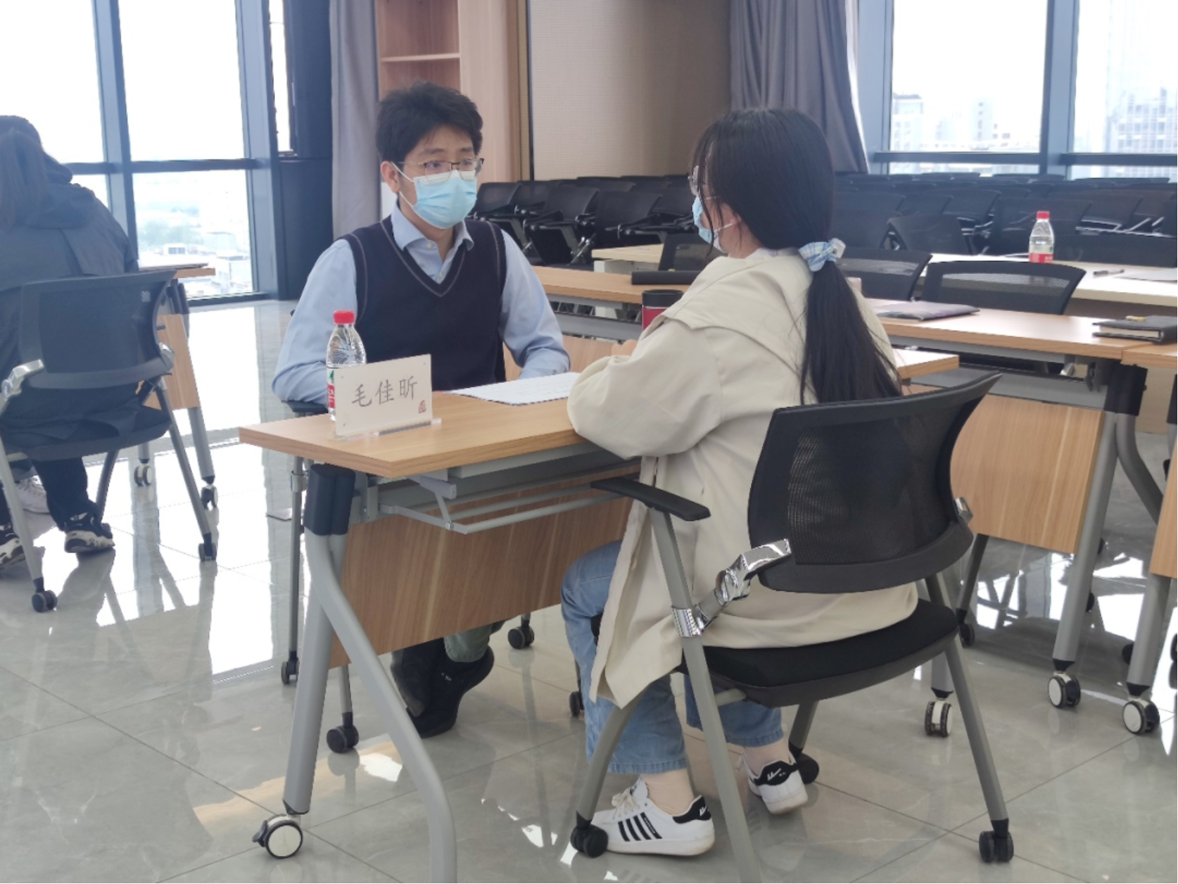 明理书院大一同学“面谈互评”在Poster展结束后进行,学院9位教师与同学们进行了一对一交流。通过本次面谈活动,同学们加深了对学院情况的了解与认识,明确了自己的选择方向。