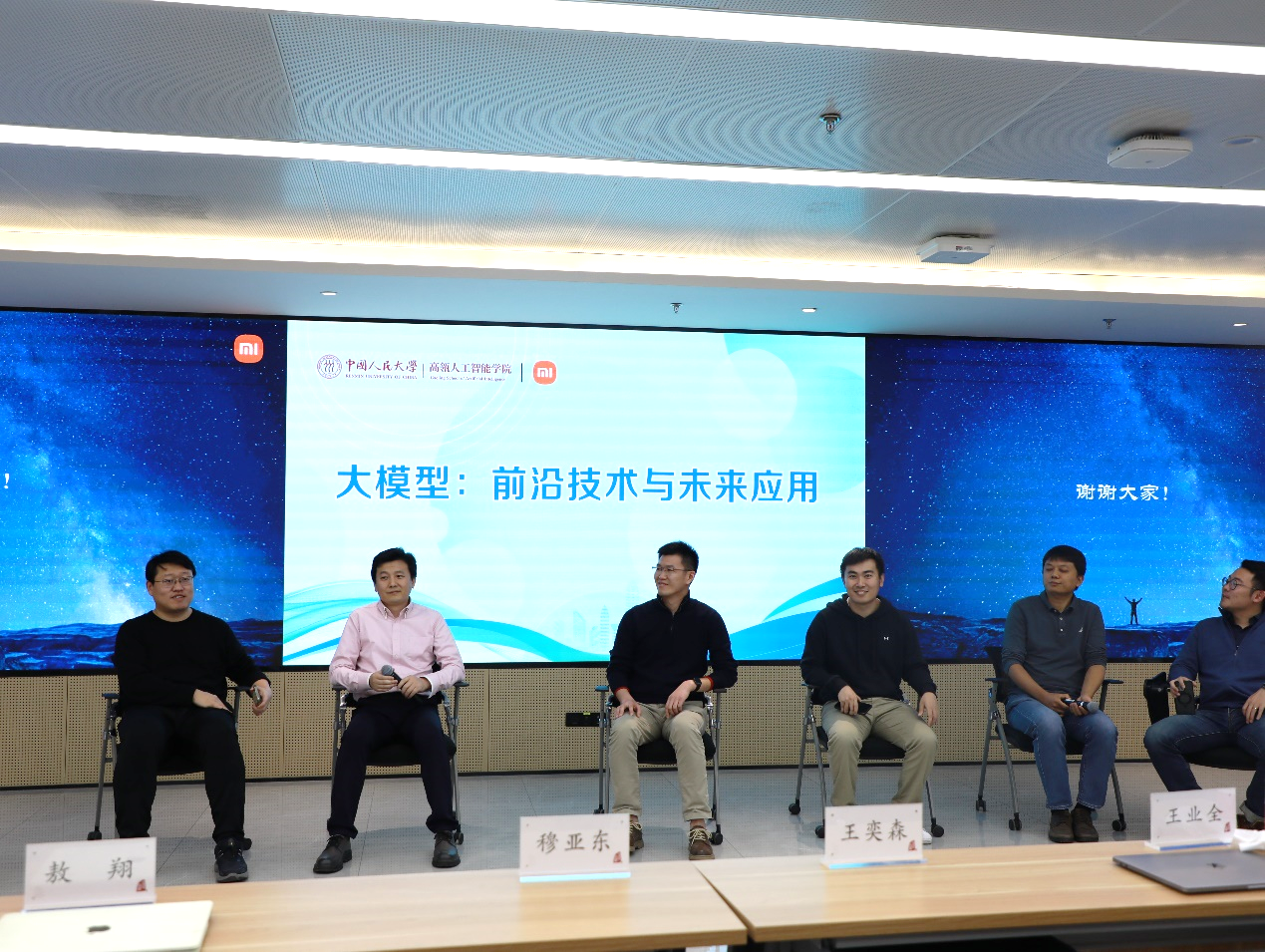人大威尼斯人娱乐场官方网站 执行院长文继荣教授、小米集团技术委员会AI实验室王斌主任出席会议并致辞。哈尔滨工业大学社会计算与信息检索研究中心准聘副教授冯骁骋,小米集团技术委员会AI实验室大模型算法负责人刘伟,北京智源人工智能研究院王业全,北京大学王选计算所长聘副教授穆亚东,北京大学助理教授王奕森,中国科学院计算技术研究所副研究员敖翔,小米集团技术委员会邓巍、栾剑、周珏嘉,威尼斯人娱乐场官方网站 准聘副教授陈旭、李崇轩、准聘助理教授林衍凯等专家学者受邀参会。会议由人大威尼斯人娱乐场官方网站 长聘副教授严睿、准聘副教授陈旭、准聘助理教授林衍凯和小米集团技术委员会秘书长周珏嘉分别主持。