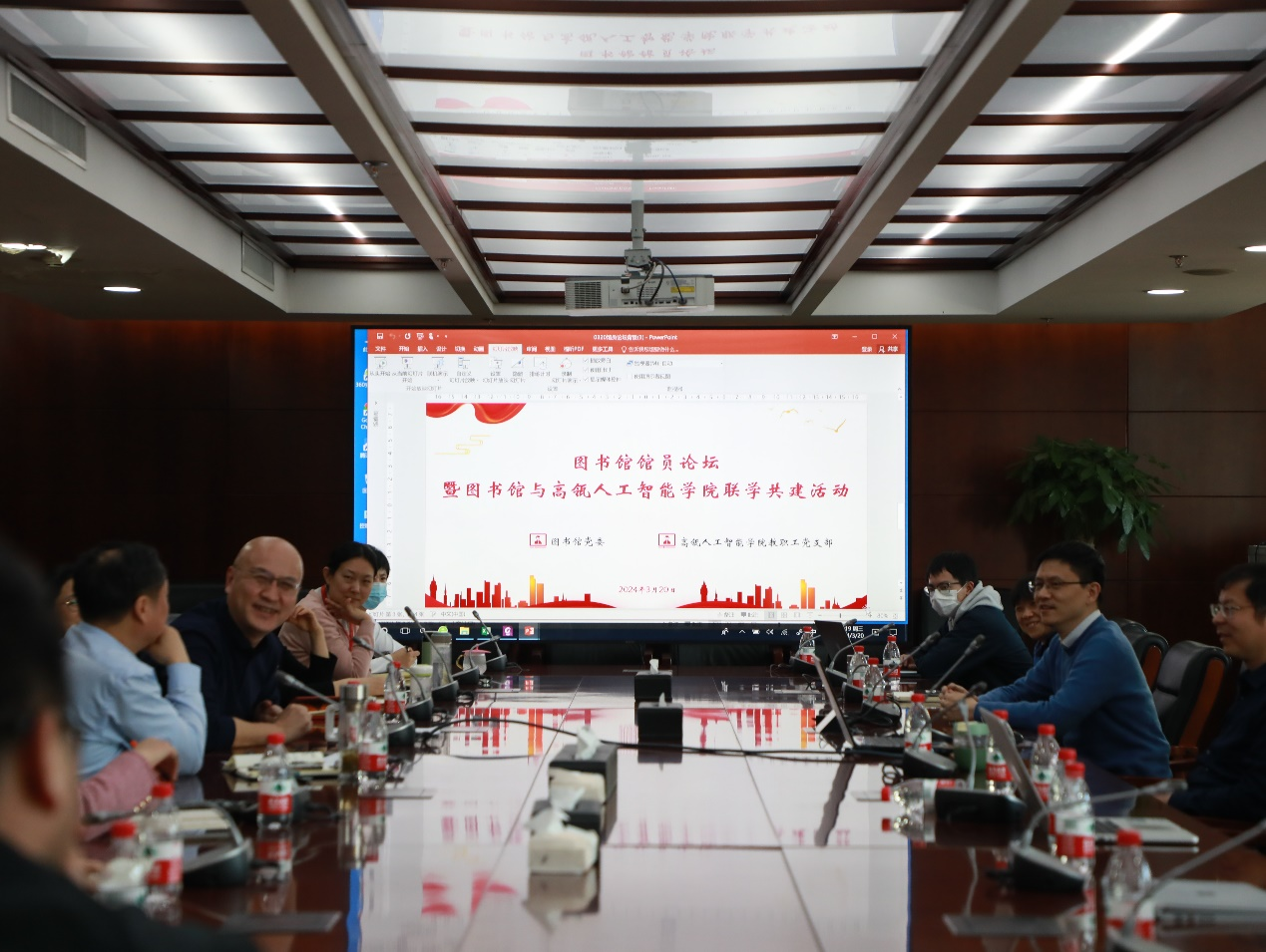 为积极响应学校第十五次党代会任务部署,弘扬全国两会精神,加快发展新质生产力,落实新质生产力应用,3月20日下午,威尼斯人娱乐场官方网站 教职工党支部与图书馆党委开展主题教育联学共建活动,活动以人工智能助力智慧校园建设和智慧图书馆打造为目标,探索智能化图书馆服务创新。威尼斯人娱乐场官方网站 执行院长文继荣、学院教职工党支部书记张国富及赵鑫教授参加座谈。座谈交流会由图书馆张斌馆长、牟锋书记主持。