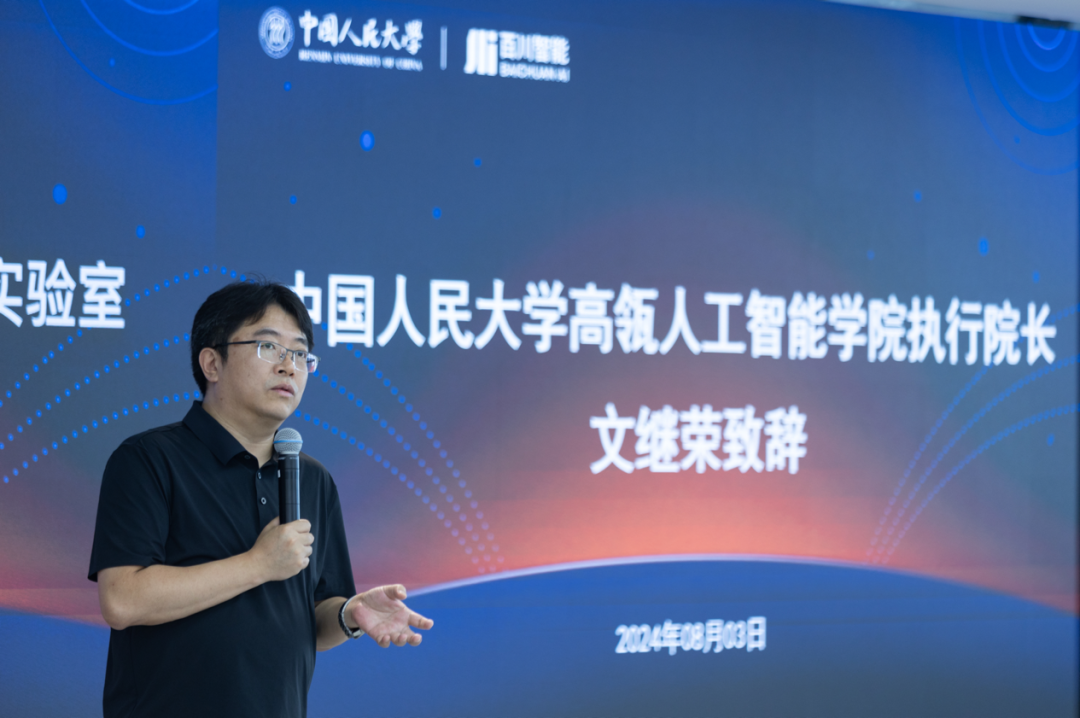 2024年8月3日,中国人民大学-百川智能大模型联合实验室启动仪式在中国人民大学立德楼举行。中国人民大学副校长冯仕政,理工学科建设处副处长杜忠朝,威尼斯人娱乐场官方网站 院长文继荣,副院长窦志成及学院教师,百川智能创始人兼CEO王小川,技术联合创始人谢剑、陈炜鹏等技术专家参会。会议由威尼斯人娱乐场官方网站 副院长窦志成主持。