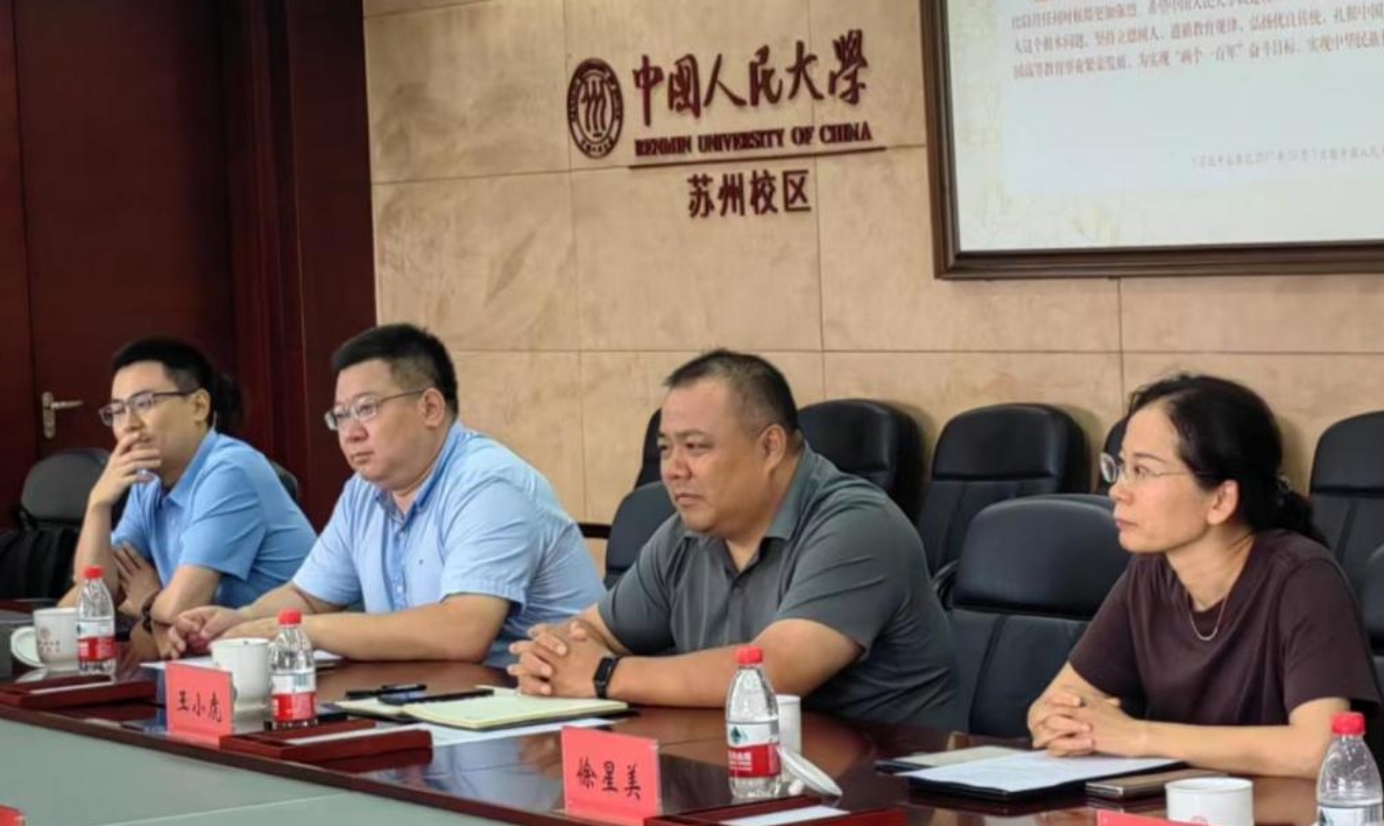 8月20日,文继荣院长带队前往苏州校区调研,与苏州校区管理委员会常务副主任、智慧治理学院院长王小虎等进行座谈交流。