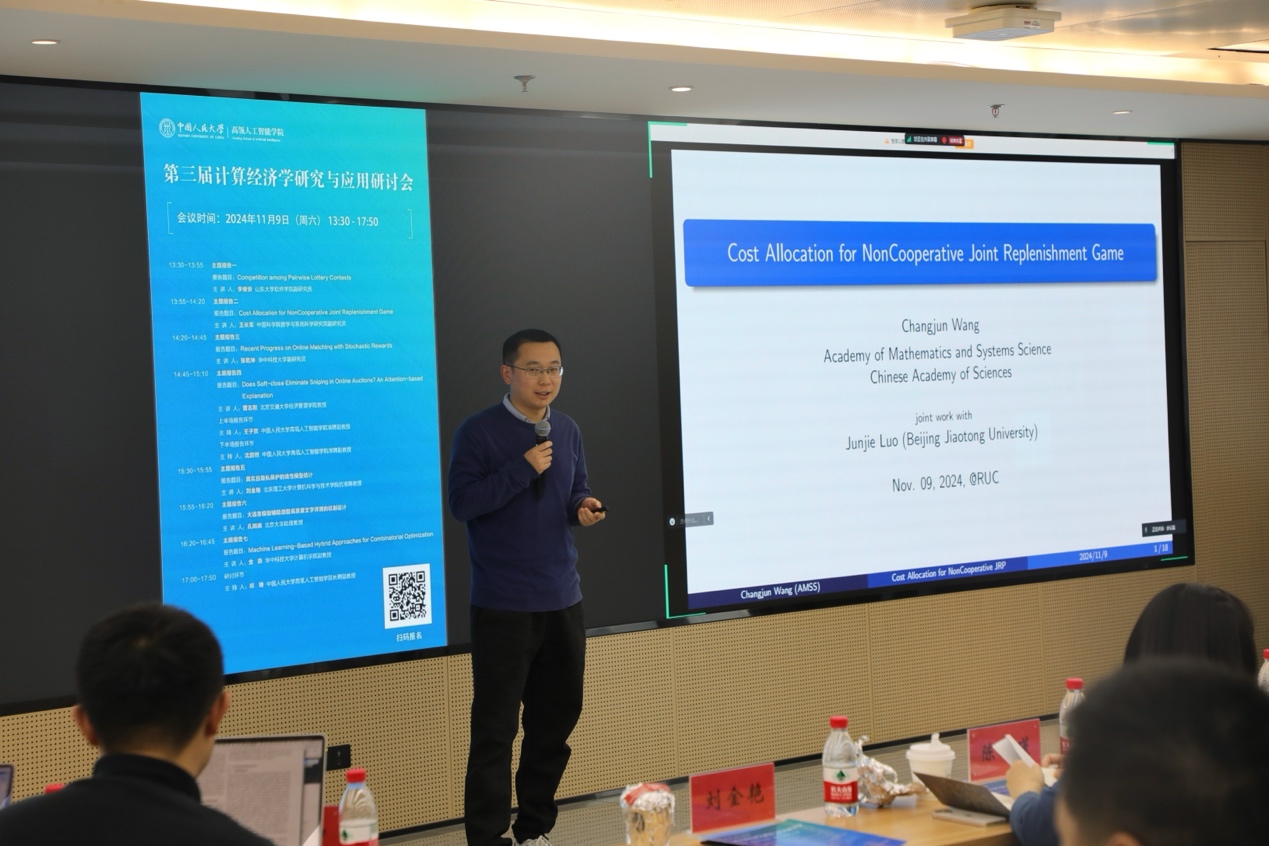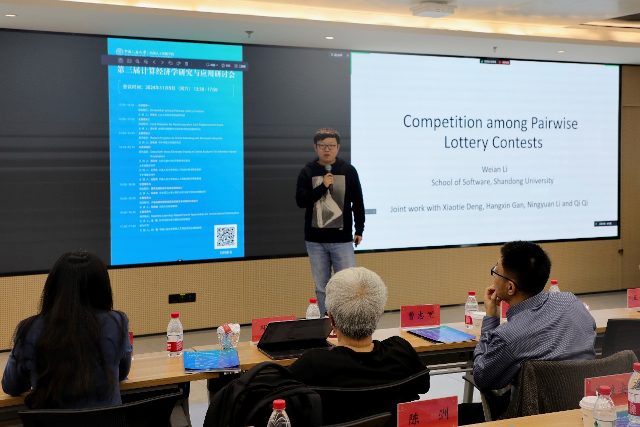 2024年11月9日,由威尼斯人娱乐场官方网站 主办的第三届计算经济学研究与应用研讨会顺利召开。北京大学计算机学院讲席教授、欧洲科学院外籍院士邓小铁,北京交通大学经济管理学院教授曹志刚,清华大学计算机系教授陈婧,中国科学院数学与系统科学研究院研究员陈旭瑾,北京理工大学计算机学院准聘教授刘金艳,华中科技大学计算机学院副教授金燕,中国科学院数学与系统科学研究院副研究员王长军,华中科技大学副研究员张乾坤,山东大学软件学院副研究员李维安,北京大学助理教授孔雨晴,浙江大学城市学院助理研究员陈洲,香港中文大学助理教授唐伟,中国人民大学副教授邝仲弘等专家学者受邀参会。