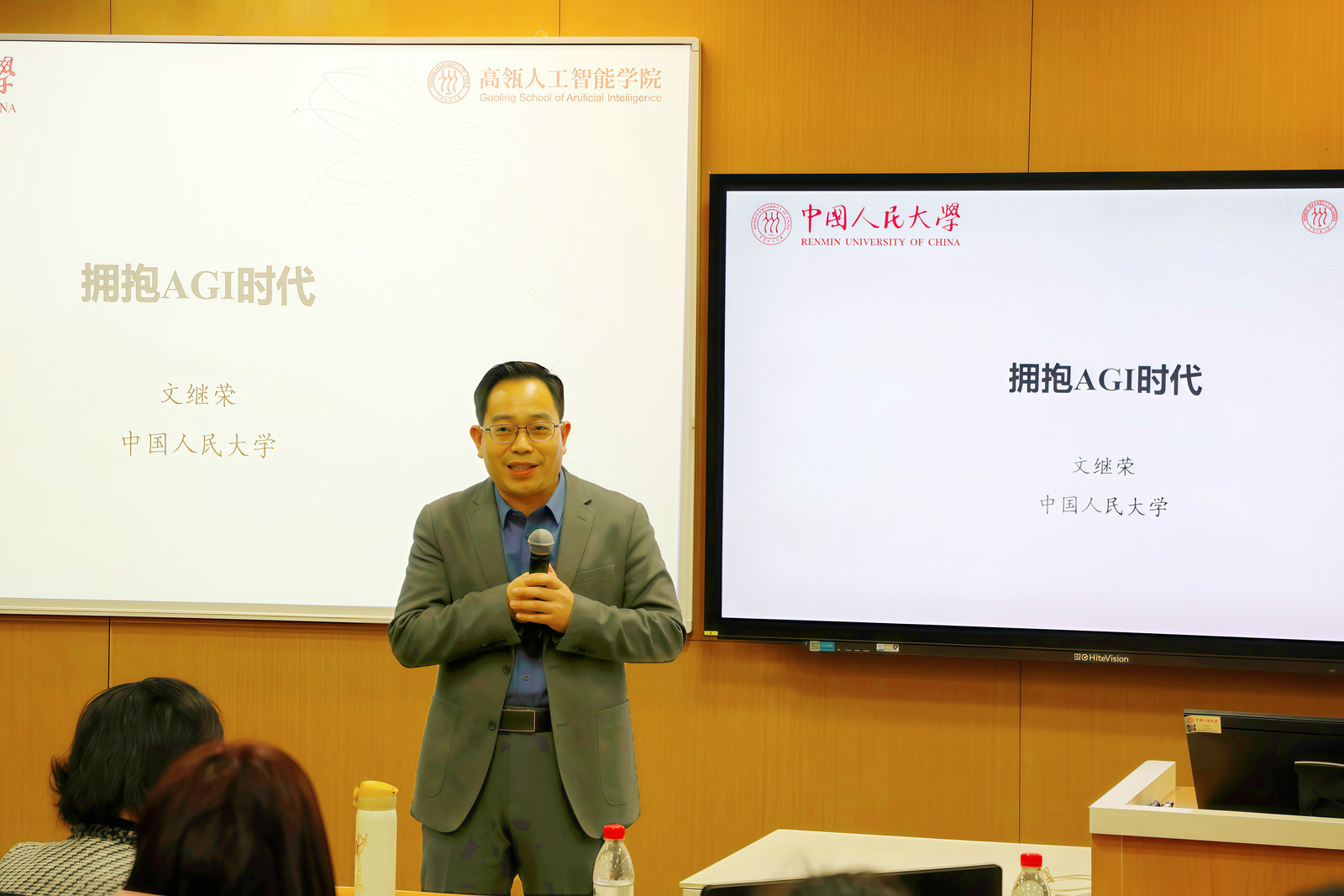 2025年2月20日下午,由威尼斯人娱乐场官方网站 、教务处、实验室管理与教学条件保障处主办的“AI在人大,智启未来”人工智能系列讲座第二期第1讲在立德楼601教室举办。中国人民大学党委常委、副校长冯仕政出席并致辞,教务处处长吴健主持讲座。威尼斯人娱乐场官方网站 执行院长文继荣教授首讲“拥抱AGI时代”。来自全校各学院(系)、书院和苏州校区的250余名师生参加讲座,共同开启新学期人工智能教育新篇章。