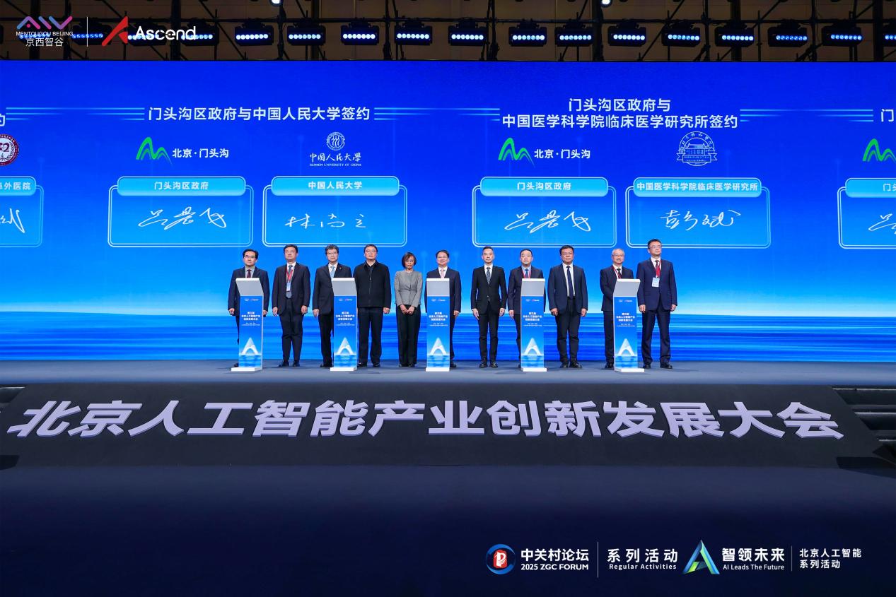 中国人民大学校长林尚立出席主论坛签约及发布仪式,中国人民大学与门头沟区政府签署人工智能产学研合作框架协议,共同建立京西智谷—中国人民大学人工智能与智慧治理研发中心。该中心旨在通过京西智谷的资源优势,为人工智能企业培养人才,为学校学生实习就业搭建平台,在更高起点、更大规模、更宽领域上谋划和推进人工智能人才培养与产业发展。