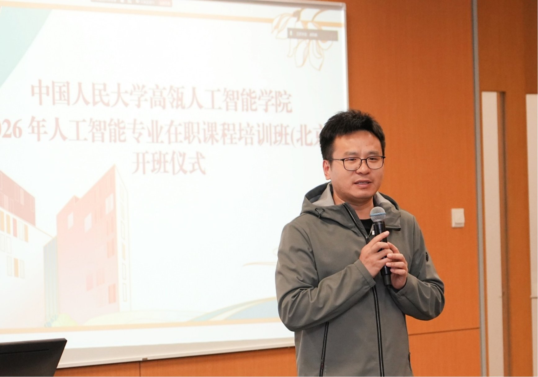 开班仪式上,孙浩代表学院对全体学员的到来表示欢迎,并介绍了学院的发展情况与人才培养理念。随后他指出,本期课程班的开设,正是学院人才培养体系的重要组成部分。培养班学员多为行业一线人员,通过系统学习人工智能理论与方法,可提升专业能力并推动技术在各领域应用。他勉励学员坚持完成学习、积极备考并申请学位,课后加强交流研讨以提升学习效果,同时强调要遵守课堂纪律、重视校园安全,共同维护良好的学习环境。