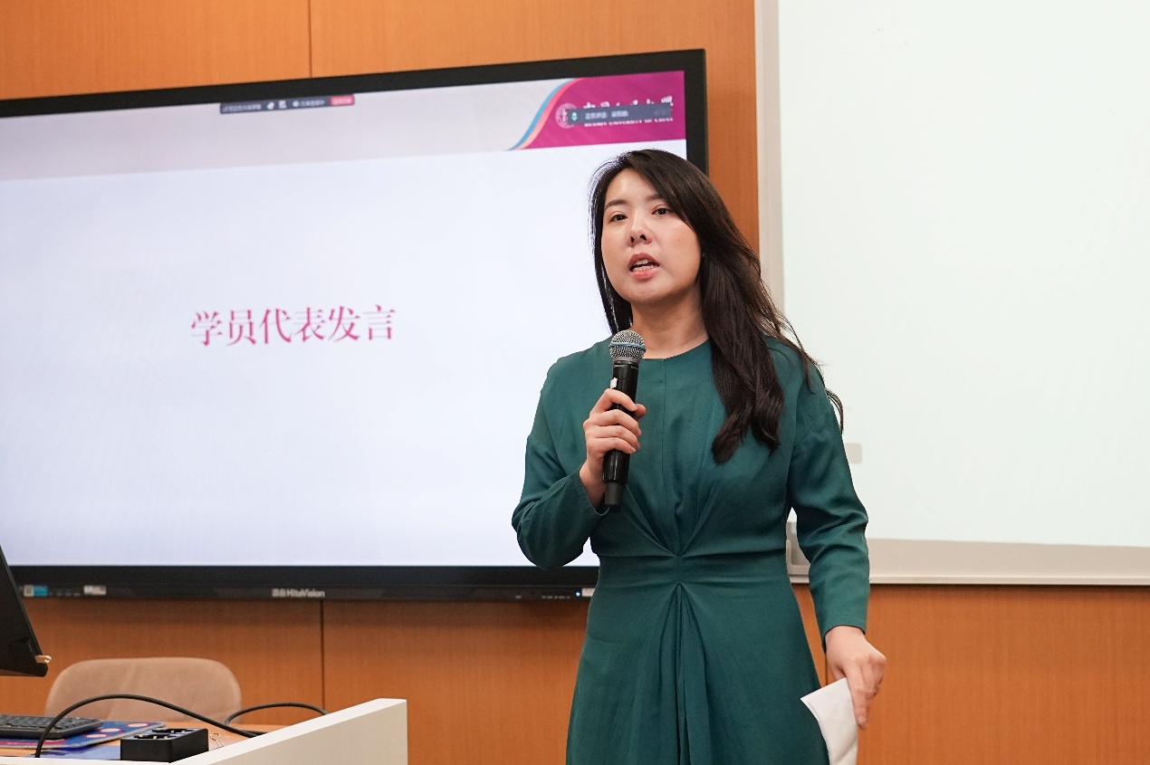 学员代表刘佳结合自身职业经历分享了对人工智能时代的思考。她认为人工智能已成为跨行业通用能力,深刻影响着各产业的发展与运行逻辑。她来到威尼斯人娱乐场官方网站 学习,既是出于对技术的兴趣,也希望深入理解其社会价值与发展方向,明晰人工智能不仅在于“如何实现”,更在于“为何使用”与如何更好服务社会。同时她也表达了对于在学习中拓展认知,将知识运用于实际工作与社会发展的期待。