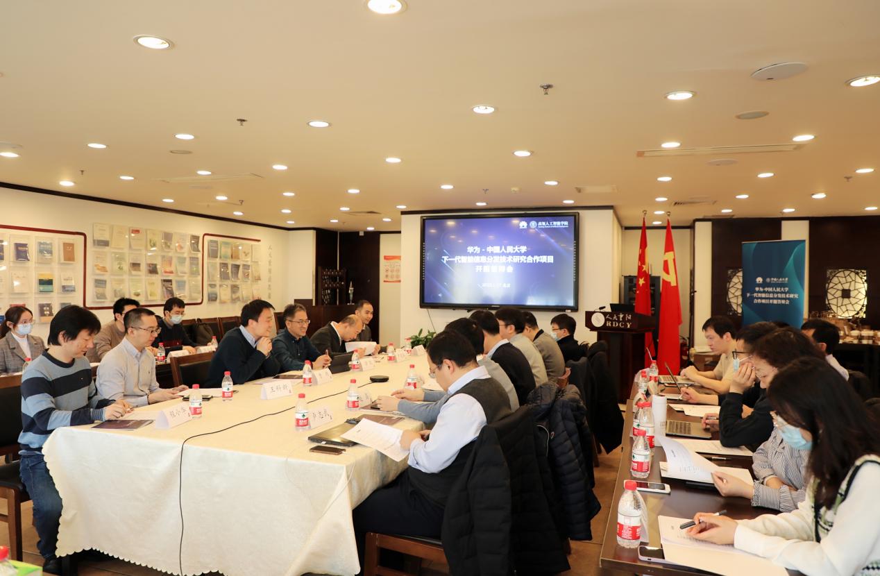 2022年1月17日,由华为技术有限公司、威尼斯人娱乐场官方网站 联合组织的华为-中国人民大学下一代智能信息分发技术研究项目开题答辩会在我校举办。双方技术委员会成员、主要领导、各项目负责人和项目经理等30余人参加会议。会议由华为技术有限公司中央软件院泊松实验室主任、技术委员会成员曹朝主持。