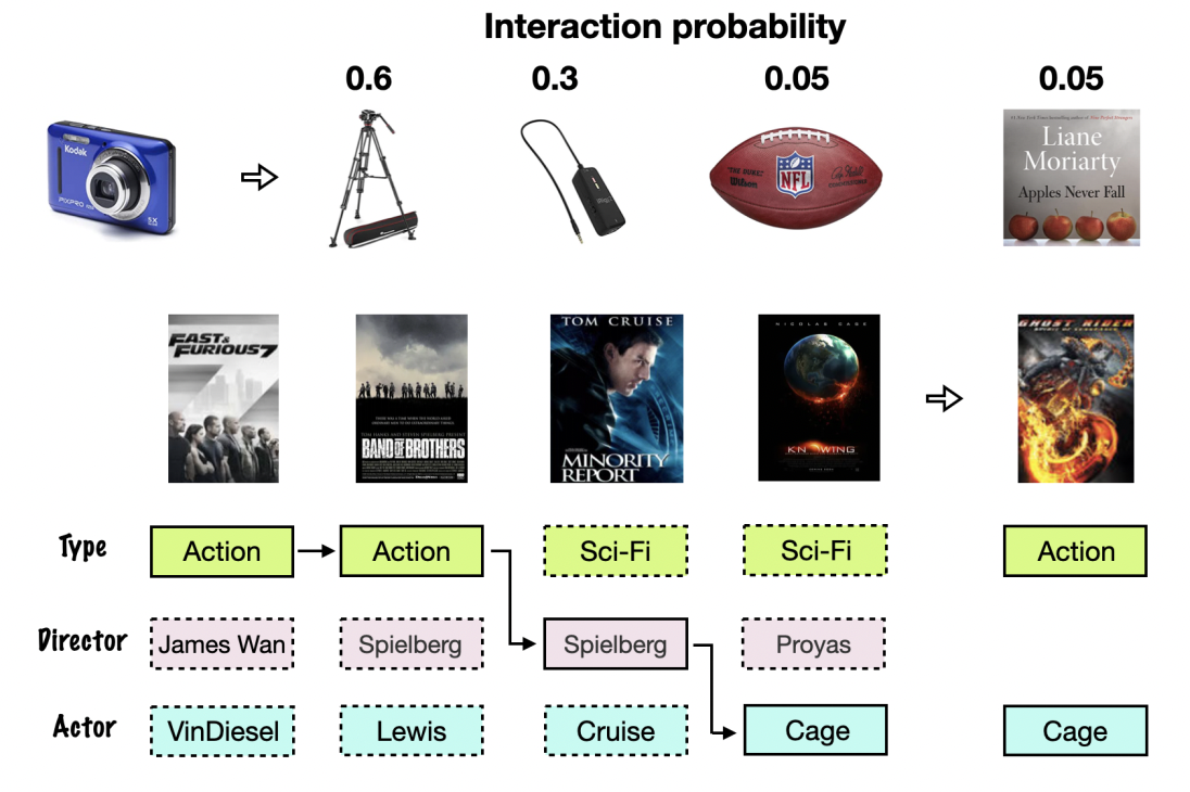 论文概述:序列化推荐的基本目标是捕获用户不断变化的偏好。直观地说,用户与项目交互通常是因为某些特定的特征,而用户不断变化的偏好本质上是由沿时间线上的一系列重要特征决定的。然而,现有的序列推荐模型通常通过一个统一的嵌入来表示每个项目,这无法区分项目特征,更不用说对特征序列进行建模了。为了弥补这一差距,同时能够实现更集中的模型优化和更好的推荐性能,本文提出了一种新的序列化推荐模型,用于学习用户行为背后的关键项特征序列。为了达到这个目标,我们首先用显式或隐式的特征来表示每个项目,然后建立软模型和硬模型来寻找最优的特征序列。更具体地说,在软模型中,我们设计了一个2D注意机制,它能够同时区分序列中项目的重要性和同一项目中特征的重要性。对于硬模型,我们将特征寻找问题视为一个马尔可夫决策过程,并提出了一种强化学习方法来生成特征序列,从而降低了负对数似然。我们在多个真实数据集上与多种方法进行比较,实验证明我们的模型在NDCG和MRR上分别有8.2%和16.1%的提升。