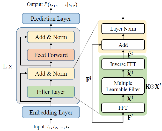 论文概述:基于RNN,CNN,Transformer等架构的模型已经广泛用于序列化推荐任务以建模用户序列化的行为特征。然而用户行为往往不可避免地带有噪声,以上较为复杂的模型往往容易拟合该部分噪声。借鉴信号处理领域,我们首先发现简单的滤波算法可以直接给这些模型带来提升,且直接将这些滤波算法与纯MLP模型结合都能超越许多复杂模型。受此启发,我们提出了一个简单且高效的纯MLP的序列化推荐模型,其基于可学习的自适应滤波器来在频域下消除噪声数据影响,等价于时域下的循环卷积算法。在8个数据集上的大量实验证明了我们模型的有效性。