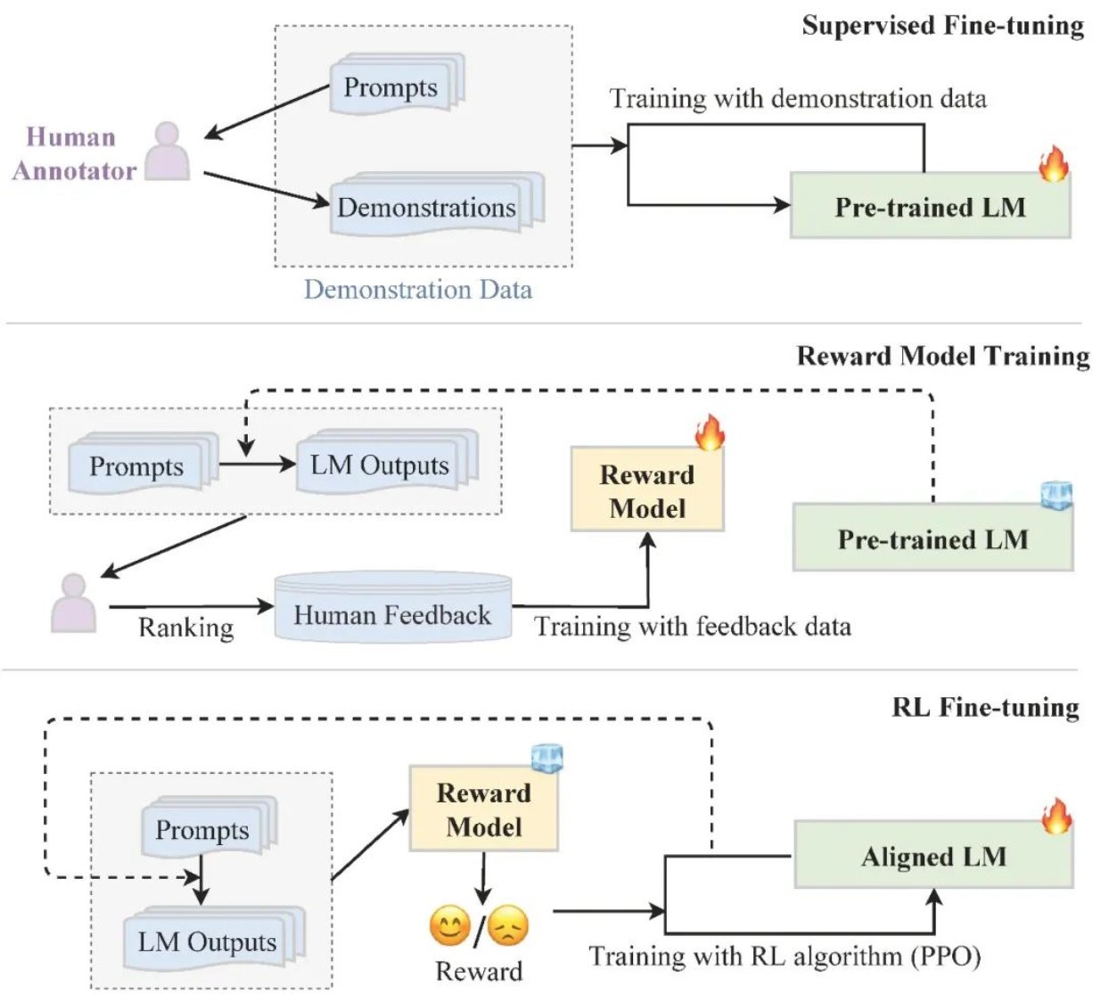 4)对齐训练,将大语言模型与人类偏好对齐;